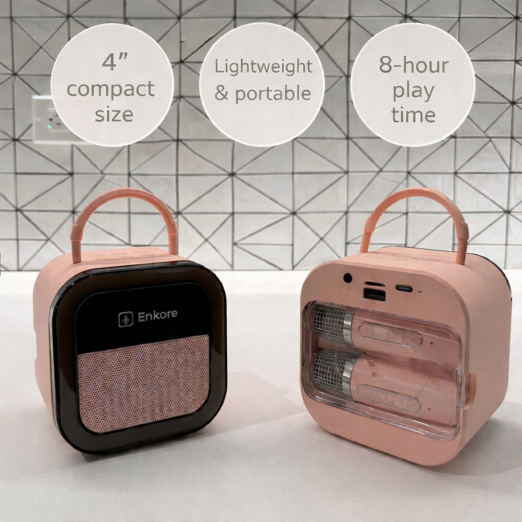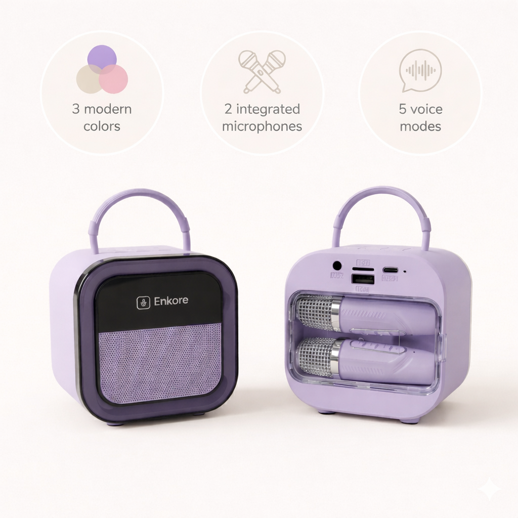 Bring the karaoke experience anywhere with Enkore One — the portable powerhouse built for every occasion. Dual wireless mics, Bluetooth speakers, and voice effects make it effortless to start the party wherever you are. Turn up the fun and make every gathering one to remember — get your Enkore One today!